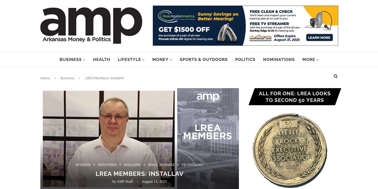 We’re proud to share that InstallAV and InstallMyShades were recognized in this month’s edition of Arkansas Money & Politics as part of the Little Rock Executive Association (LREA) members feature.